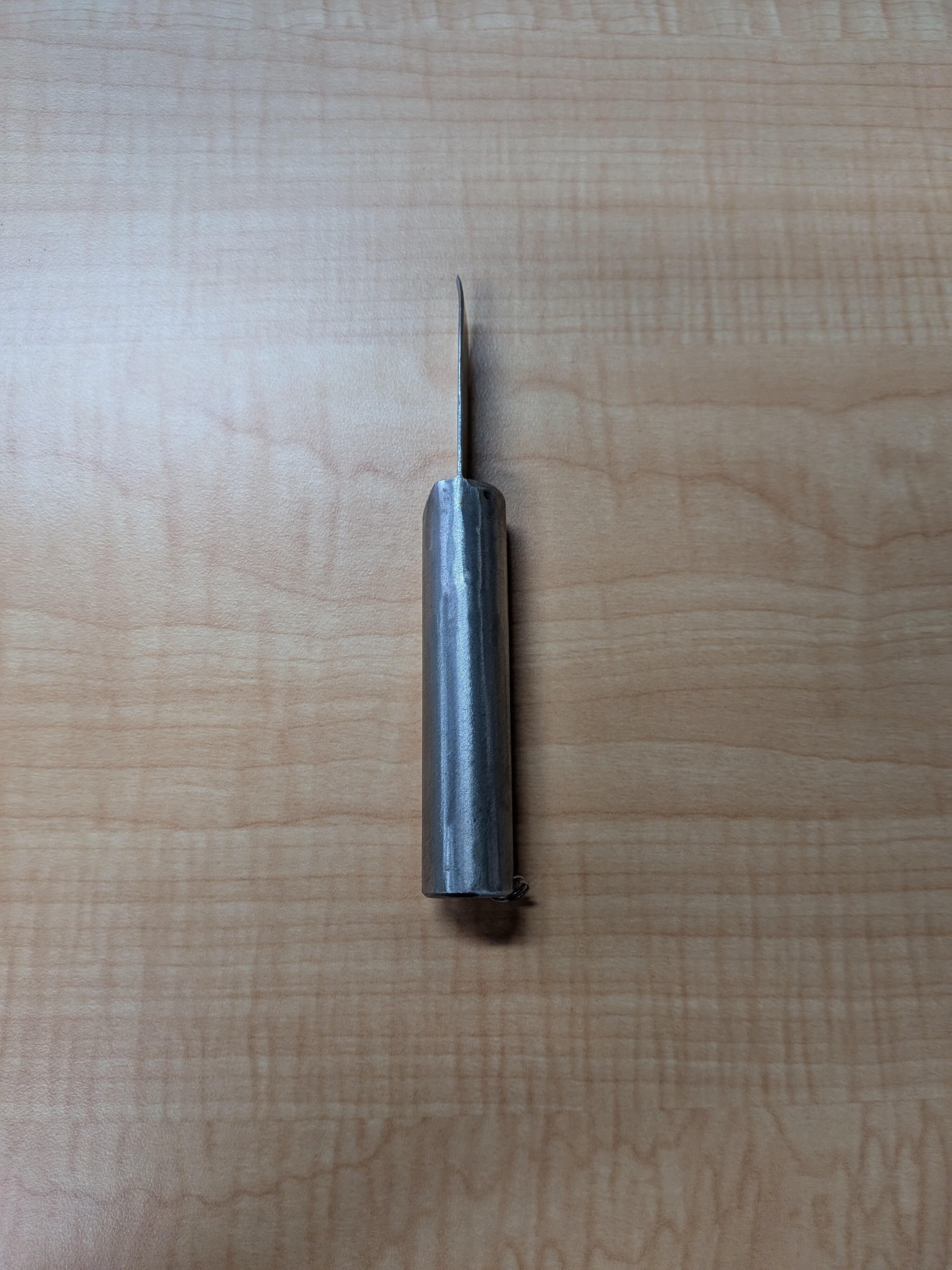 全長150mm、グリップ長さ100mm、グリップ太さ20mm、刃50mm、重さ100g