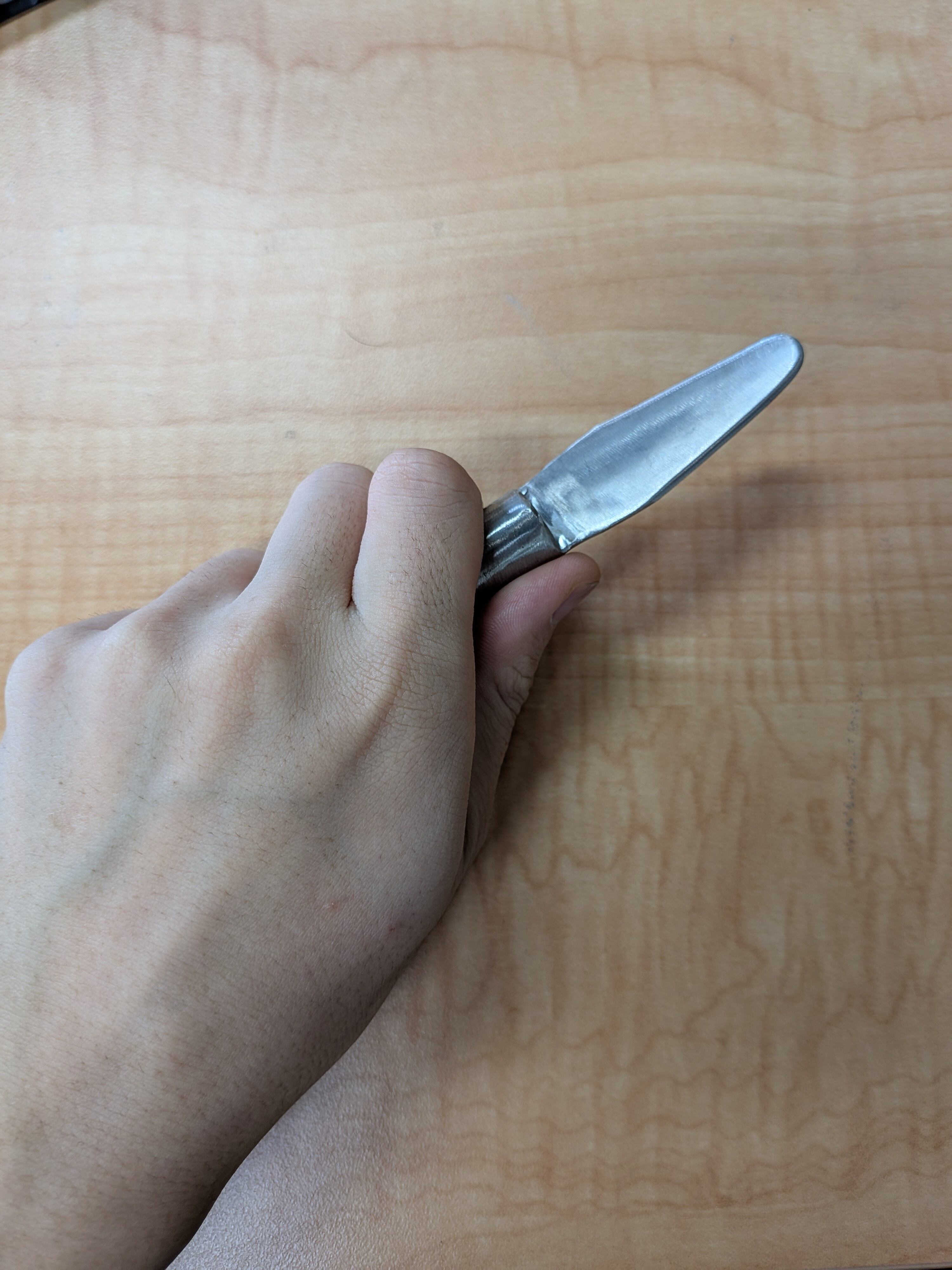 アサリ等の小さめな二枚貝に向けて小回りが効くように持ち手を少し細めにしています。