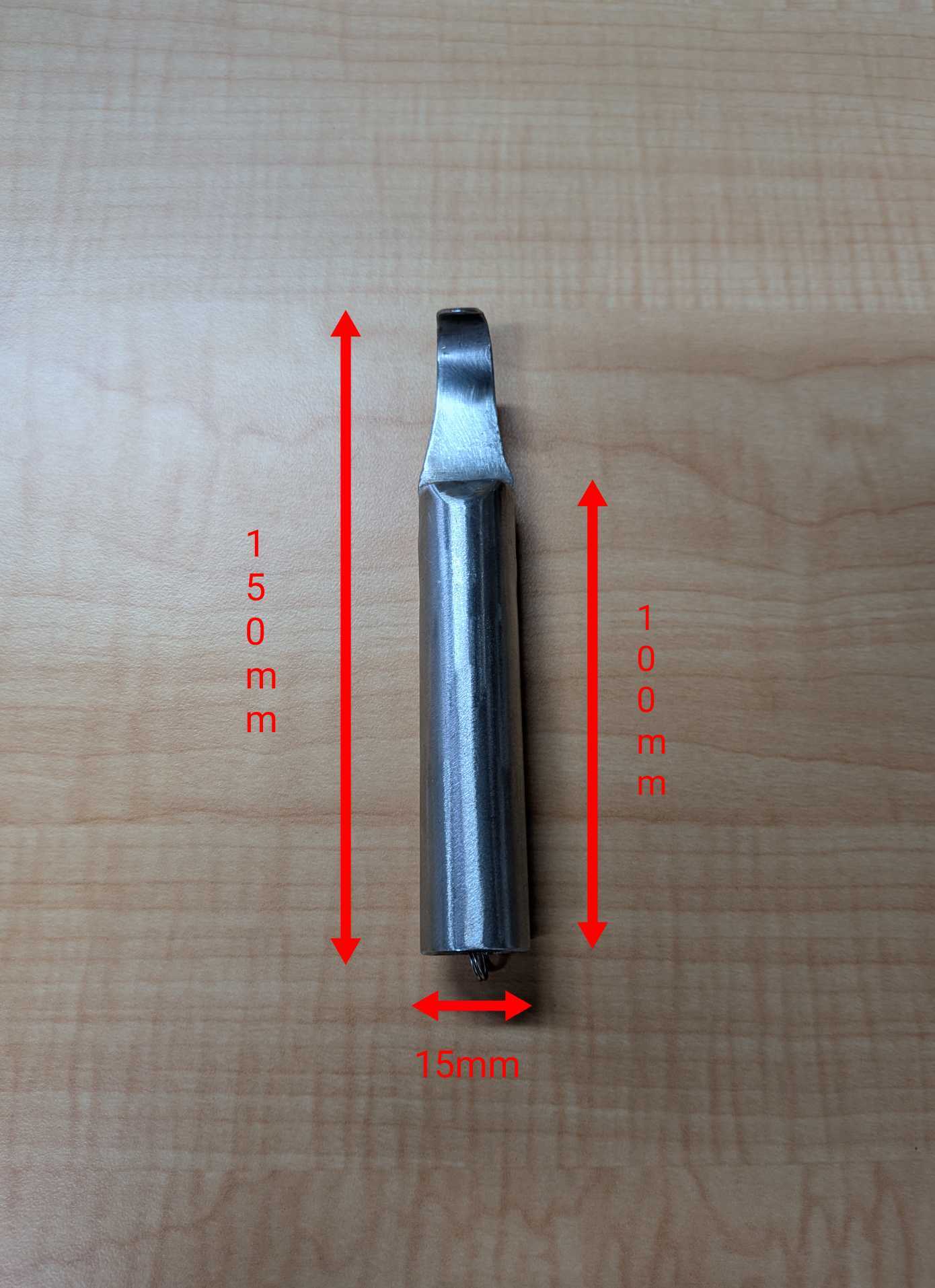 全長150mm、持ち手100mm、太さ15mm、重さ約100g